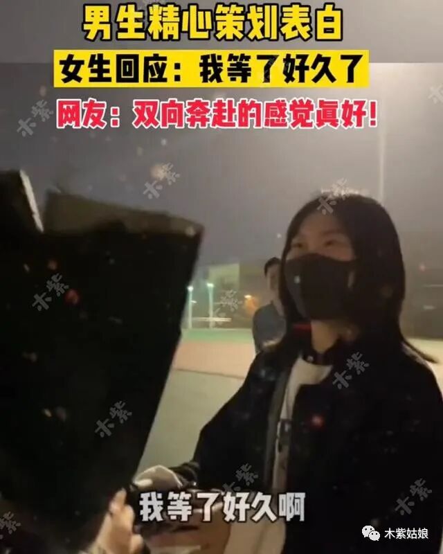 他忐忑不安地等着女生的反应,对面的女孩子,面戴口罩,披散着长发,但是看得出来,是一个清秀美丽的女生,她大大方方地主动回应:我等了好久了!