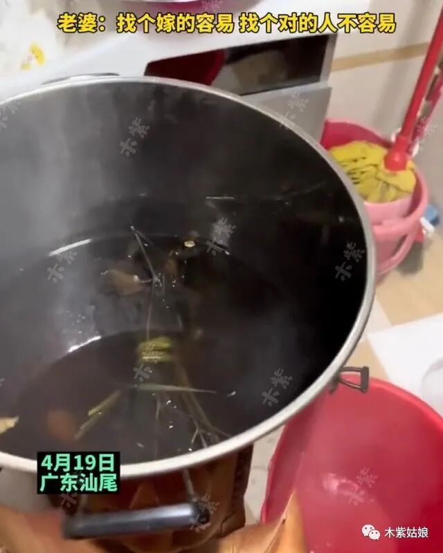 4月19日,关东汕尾,一位在坐月子的女网友拍摄了一则视频,画面中一位身穿黑色运动短袖套装的年轻男子,正小心翼翼地从墙角一个袋子中,取出来一堆干枯的草叶子,接着他把叶子放进一个很大的不锈钢桶内。