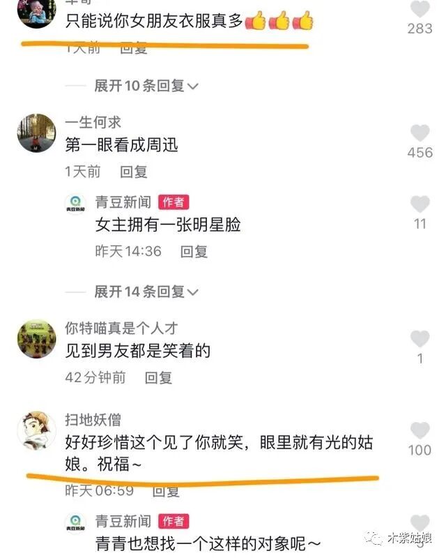 网友扫地僧则嘱托男生说,好好珍惜这个见了你就笑,眼里有光的姑娘,祝福你们!