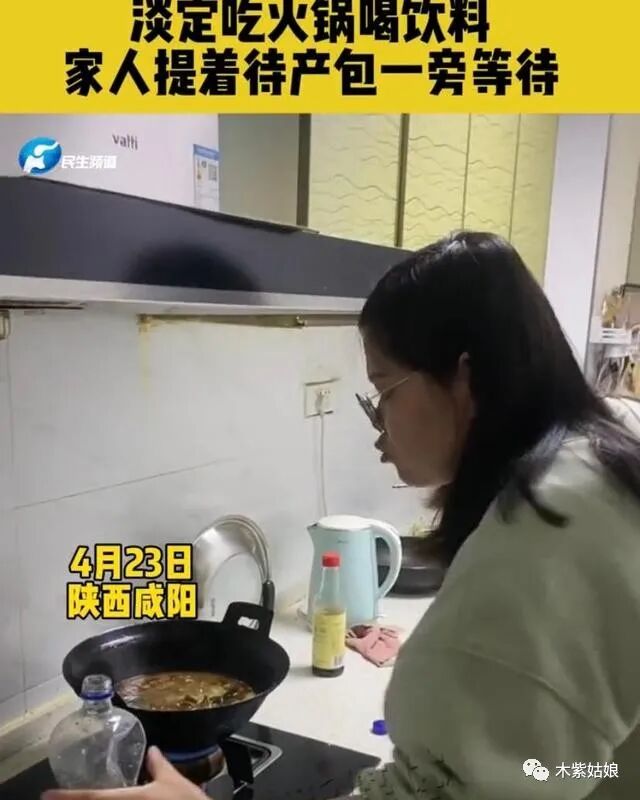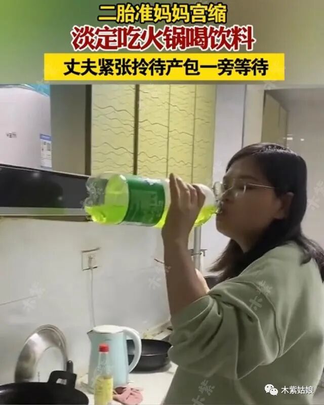 二胎宝妈宫缩临产,仍淡定吃火锅,喝饮料。