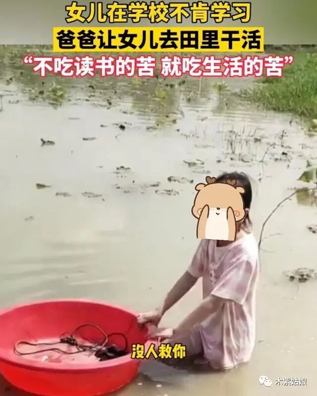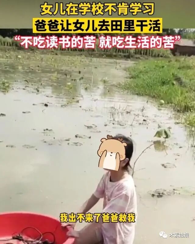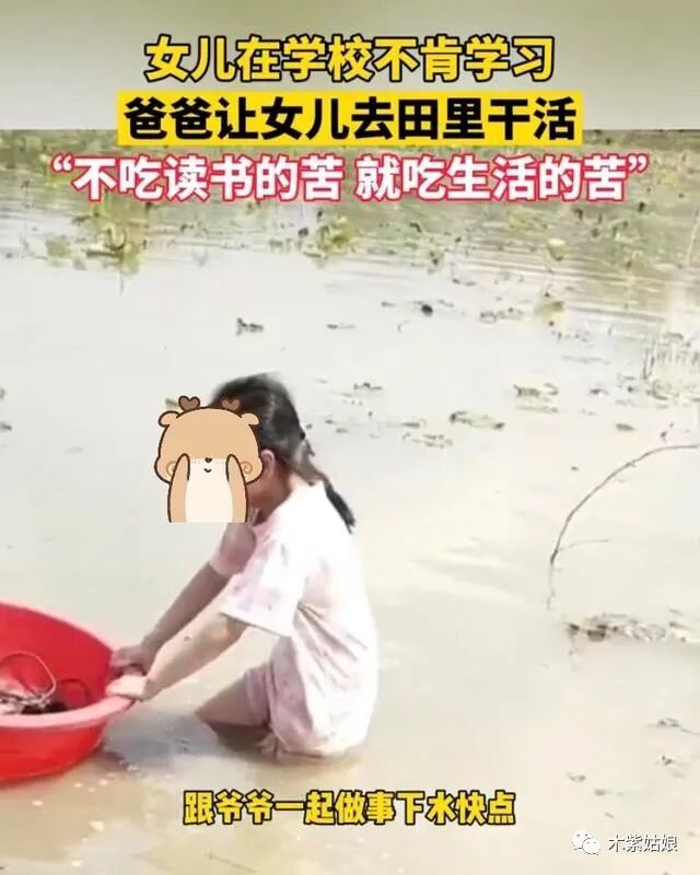 11岁女儿不肯念书,爸爸带她到水田里干农活。