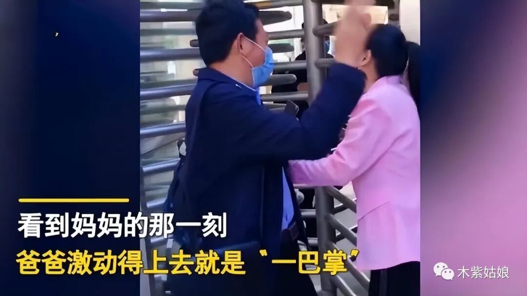 爸爸走到大门口,忽然觉着有什么不对劲,他扭头往旁边一瞅,看到了躲在角落里面的妻子。