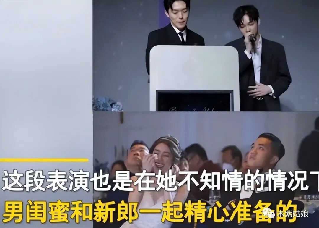 其实,你们都想错了,据说这段表演是在新娘不知情的情况下,男闺蜜和新郎一起为她精心准备的,就是想给心爱的妻子一个惊喜和感动。