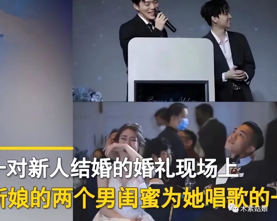 下面这位幸福的新娘,就有两位男闺蜜,而且,在她的婚礼现场,两位男闺蜜共同上台,为她高歌一曲,让她忍不住感动落泪。