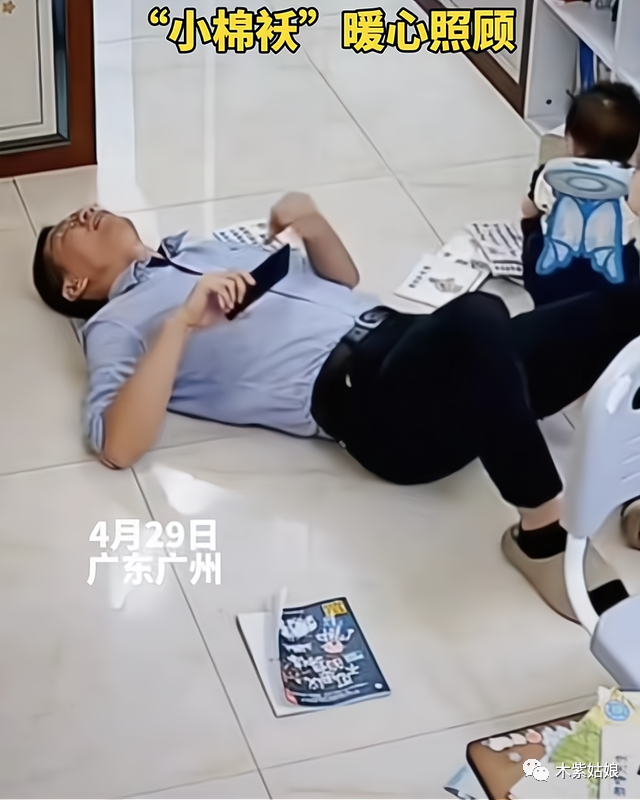 这位年轻的爸爸,晚上下班回到家,巨大的工作压力,让他疲惫不堪,来不及走到沙发或者床上,直接就躺在地板上去睡了。
