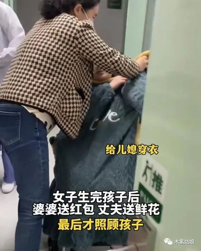 照顾好儿媳后,婆婆才走出产房,接着去照顾宝宝。