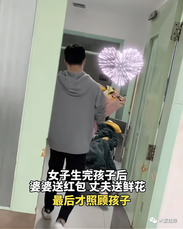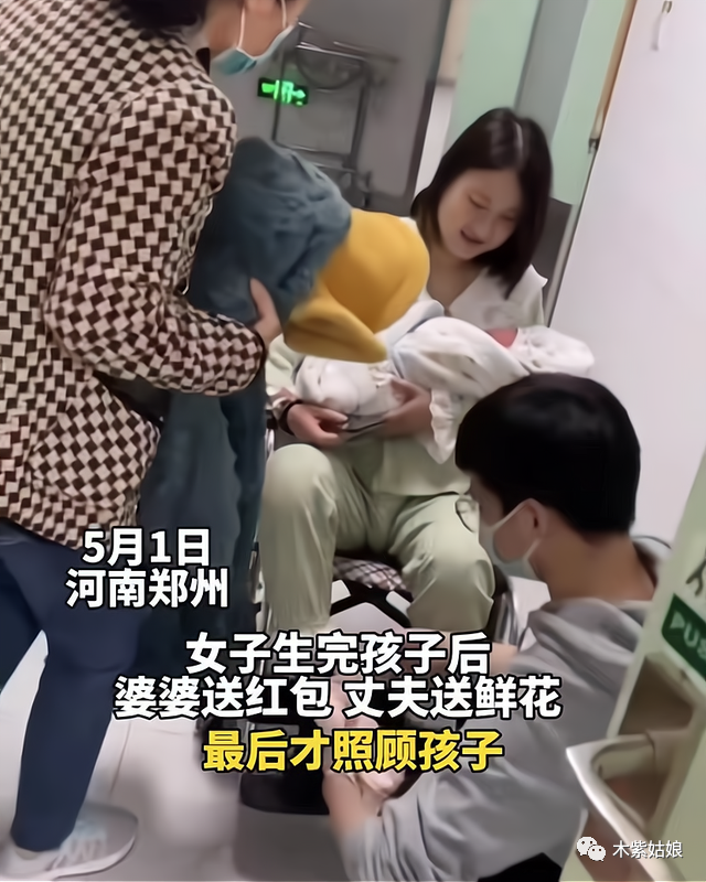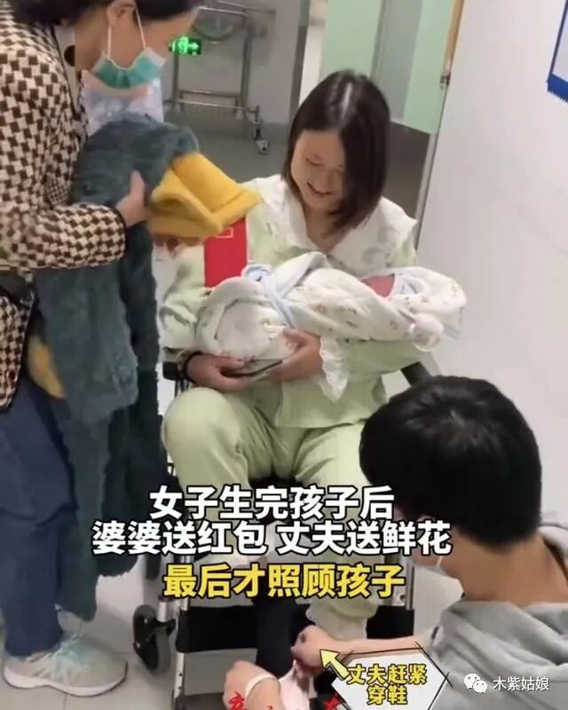 像这位婆婆和老公就做得很好,在媳妇生完孩子后,第一时间先去照顾她的身体和情绪,然后再去照顾宝宝。