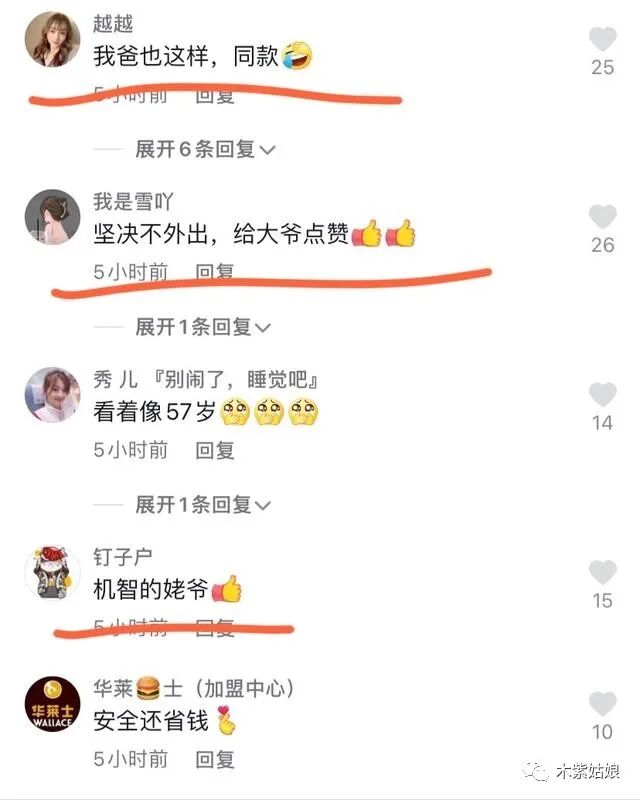 网友我是雪呀,则点赞老爷爷遵守防疫规定的措施,她说,坚决不外出,给大爷点赞,自己想办法解决困难。