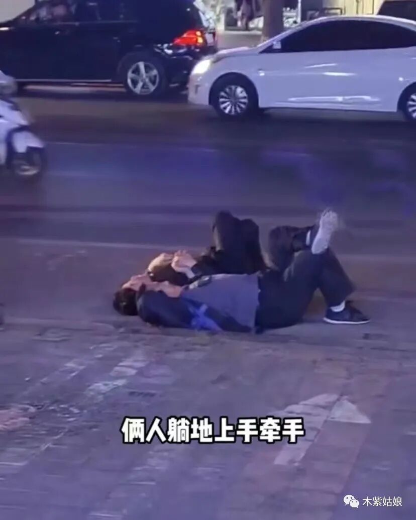 很多人好奇,这两个人在干什么?是不是出了什么事情,生病了还是躺地上碰瓷呢?