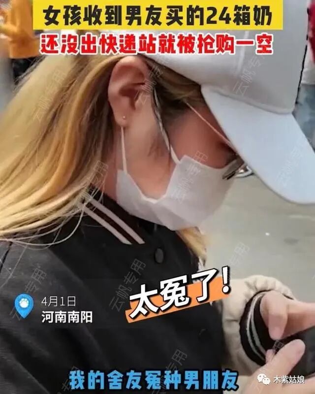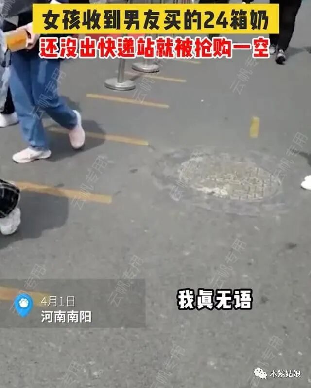 4月1日,河南南阳一位女生陪同自己的舍友去某快递站取物品,她说自己的男友给她买了24箱奶,让舍友帮忙去带回来。