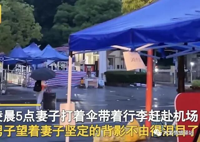天上下着濛濛细雨,妻子一只手拖着行李箱,一只手还打着伞,直奔国际机场,望着妻子那小小的身影,渐走渐远,慢慢消失在视线中,男子的双眼忍不住模糊了。