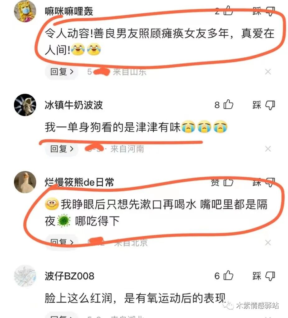 甚至有网友调侃地说,这样的画面应该起个标题,叫作男友不离不弃照顾卧床女友十年,让人感动不已。