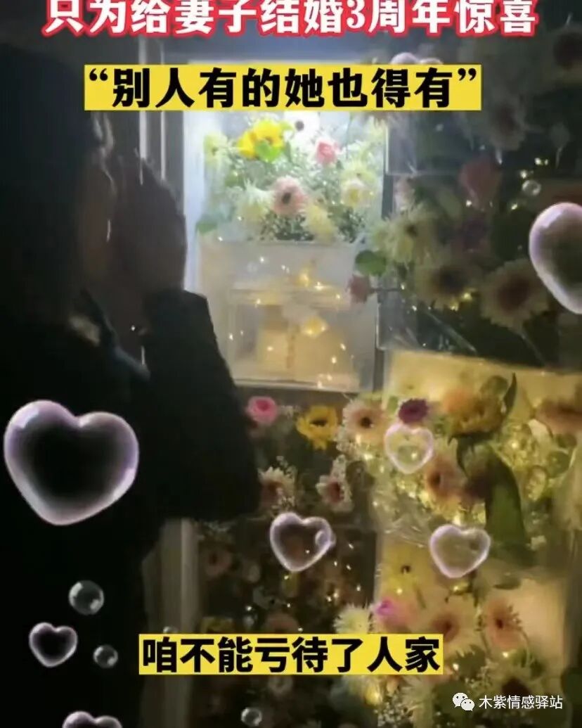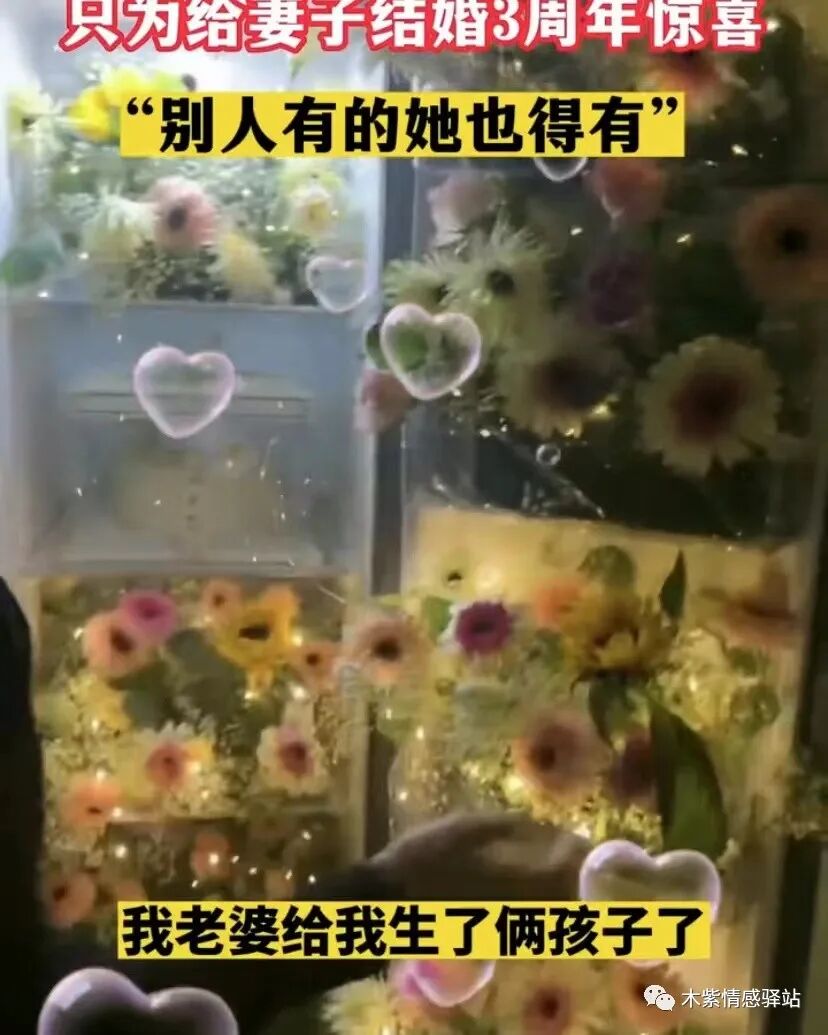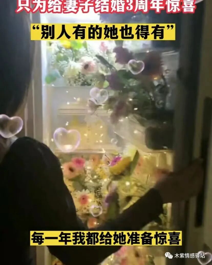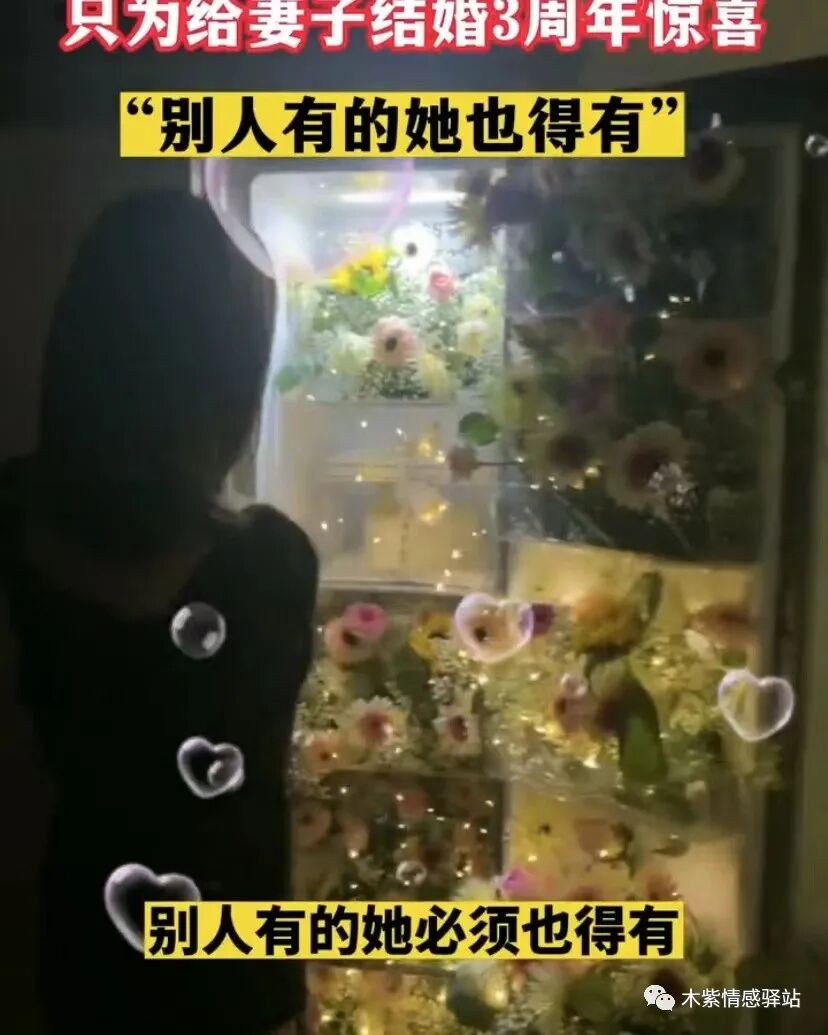 结婚三周年,丈夫准备一冰箱鲜花送给妻子。