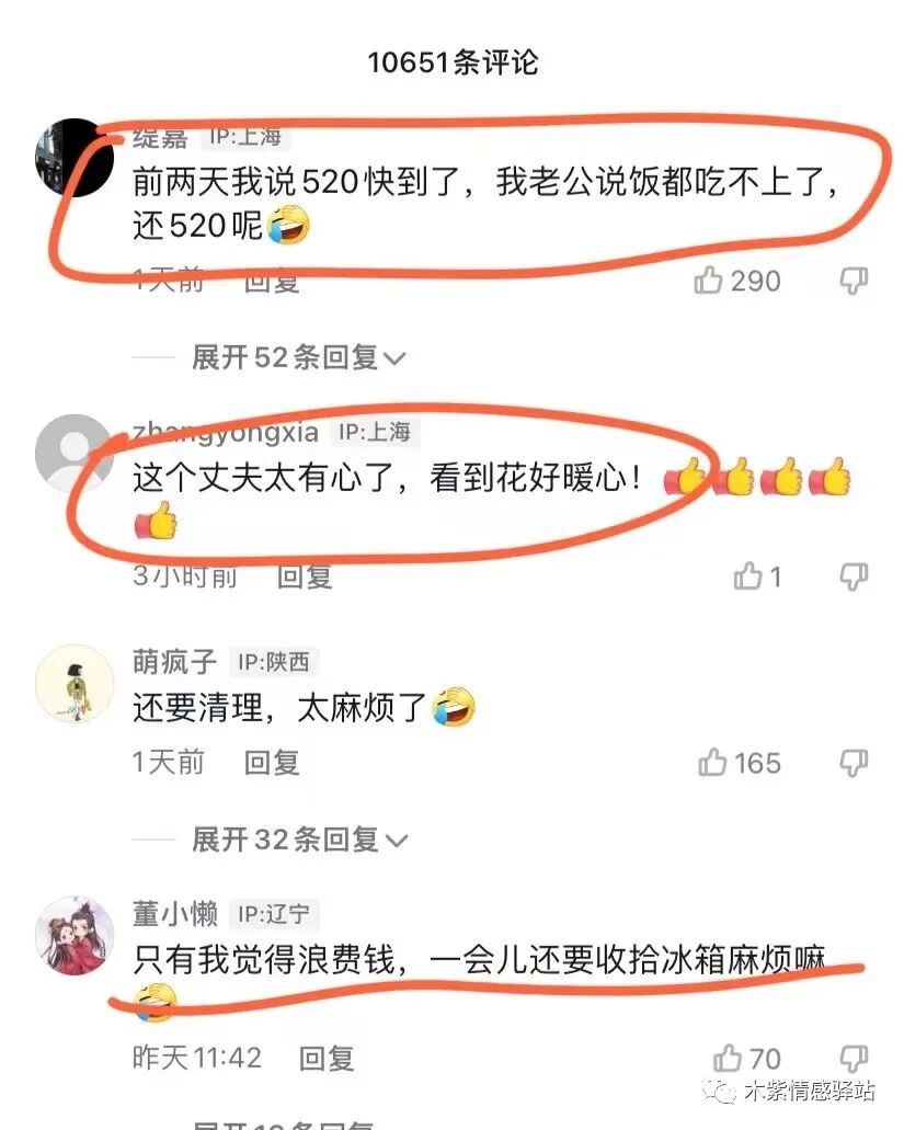 有位网友说得更凄惨,她说自己对老公暗暗戳,意思是520快要到了,结果,老公说饭都吃不上了,还520呢。