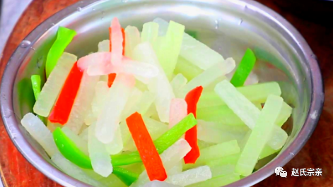 1.半个冬瓜,把皮削掉后挖去瓜瓤,再切成长条,放盆中备用。
