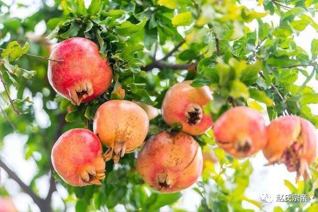 老话:“东榴金,西柿银,南榴北榴出贵人”的意思是,一般坐北向南的庭院,东面为上,是出财银出富贵的方位,而将石榴栽植在东面寓意能够生财,将柿子栽植在西面能够发财;如果将石榴栽植在南北,预示家中有贵人出现;石榴也是民间喜爱的一种吉祥树,因为石榴花火红颜色的最多,石榴红象征繁华,美好;代表红红火火,家庭兴旺,多福多子,儿孙满堂的寓意;古人用“千房同膜,千子如一”来形容一个家族千子同宗,源远流长,生生不息的兴旺盛景,足以显示石榴在古人心目中的重要地位;而且,民间还有“石榴宅中立,贵人自然来;宅中生石榴,富贵自然来”的说法;从这两句中可知,家中栽植石榴,与富贵和贵人相连;由此可以看出,家中栽植石榴,符合人们追求富贵,祈盼贵人相助的美好愿望;所以,人们将石榴纳入庭院宜植五树之一并不奇怪。