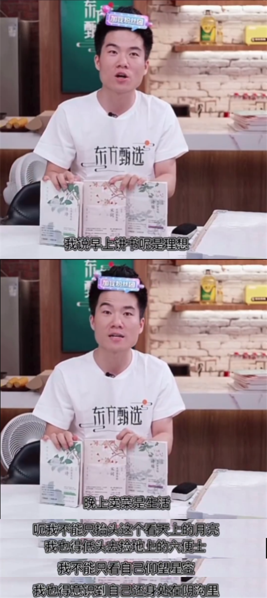 最终结果便是,他直接在直播间上演了一波才华无处安放的魅力,因为还没等他讲完,直播间里的书就被网友们抢购一空!