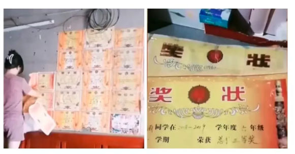 其实,这个孩子从小到大都很努力,平日里学习成绩在班级里也是拔尖的,可以看到他家里的墙上,满满都是奖状!这都是分数和名次奖,有第 一名的,也有第 二三名的。而女子对孩子充满了寄托,望子成龙,但没想到这次孩子却没考上重 点高中,这让女子无法接受,崩溃大哭!