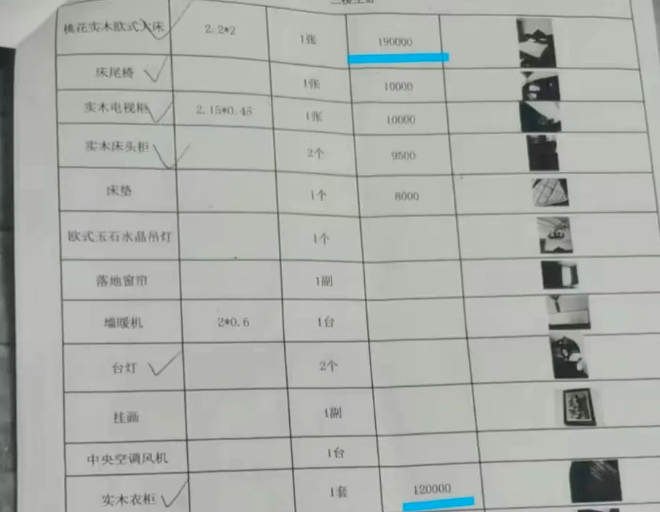 等把清单交给老板时,老板却发现问题,清单上标注的物品价格十分昂贵,床19万元,书柜12万元、衣柜12万元……据房东提供的房屋物品清单,别墅内的物品价值总达百万元。曾先生认为房东标注的房屋物品价格过高,觉得被套路了,提出要么退租,要么房东把东西搬走。