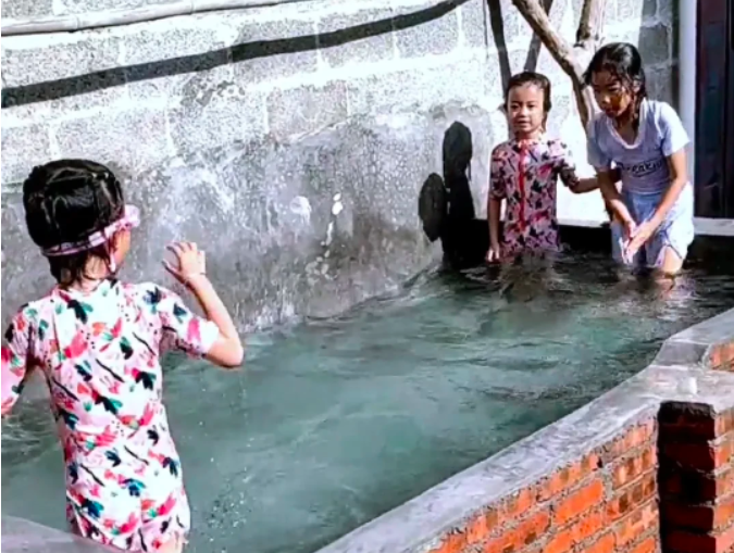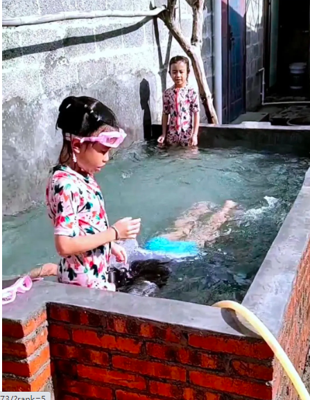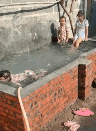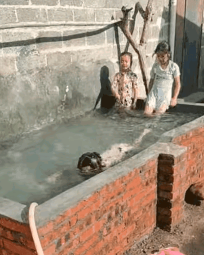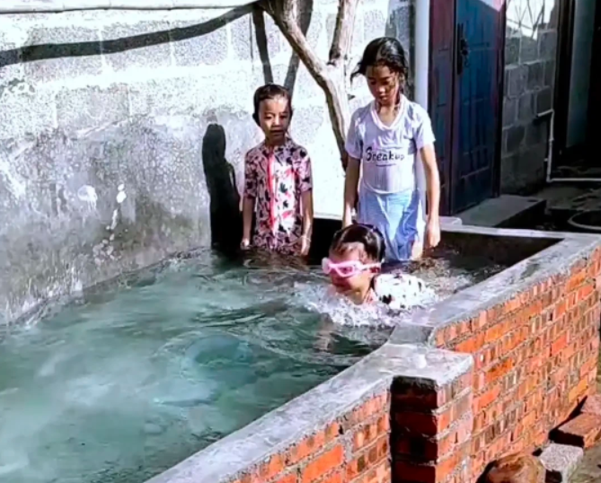 农村孩子缺少娱乐锻炼场所,爷爷就在家门口,为孙女修建游泳池,孩子们玩得开心快来,砖砖水水都是隔辈爱。家门口游泳方便安全,既能娱乐锻炼身体,又能学到游泳技能,一举两得。