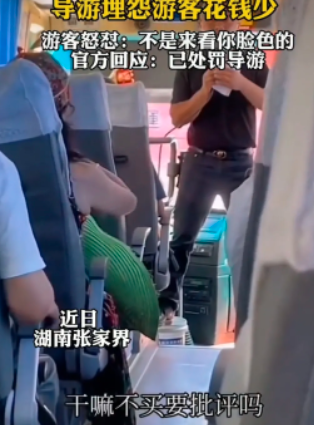 一辆湖南张家界的旅游大巴上,一段导游与游客的对话,瞬间让现场的火药味儿十足,原来大巴上的导游在引导顾客进行强制性消费,对于没有消费的顾客,全程都是批评的口气,这期间大巴上的游客大部分人默默的听着没有说出一句话,就在这时,一位游客突然怒怼说,“你这是在批评谁呢”导游反问道这么辛苦这么廉价把你们带出来玩,大家要有良心,这时游客反问,难道不买东西就是没有良心了?一时间把导游怼的哑口无言。