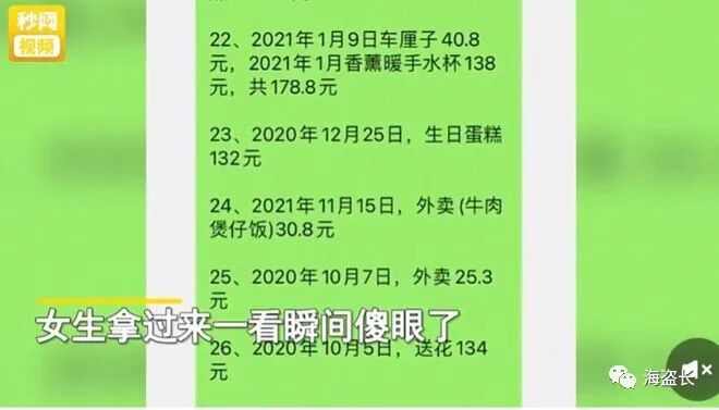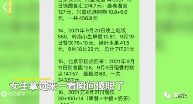 情侣分手男子当场甩出两年消费清单:时间,地点,人物,消费金额,保留到小数点后两位,这就是妥妥的恋爱教材。