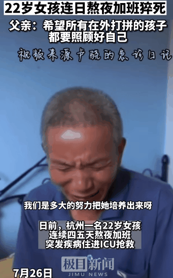 杭州一22岁女孩,连续熬夜加班猝死,父母泣不成声:花了多大的努力才把她培养出来。