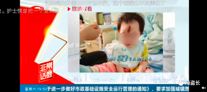事情起因是,去年五月,刚一岁的妍妍因为感冒去输液,结果在输液结束后,因为护士的操作失误,把输液软管的针头剪断了。护士一下子也慌了,赶紧上手去挤,想要取出针头,可是却没有做到。妍妍奶奶称,刚开始还能看到针头的尾部,但是被护士这样一挤一松的操作之后,就完全看不见了。后来,当地的医院说给妍妍做微创手术取出针头,可是手术进行了三个小时,完全没用。而且这一过程中,医生在未经家属同意的情况下加大了创口,导致娟娟妍妍的额头留下一条五到六厘米的疤。后来他们又辗转去了两个大医院,又经过一个手术,还有各种检查,最终结果是软管找不到。当妍妍的妈妈小心翼翼地问医生,留置针在妍妍体内会有什么后果时,医生告诉她:“留置针随着血液流动,如果触碰到心脏、神经等部位,随时都会死人。”但是现在无计可施,只能回家观察。现在事情已经过去一年了,虽然妍妍目前身体没有什么症状,但是却因为头上的疤被小朋友们疏远嘲笑,关键是家人们每天过得提心吊胆的,生怕哪天妍妍突然身体出了状况。因此,妍妍家人向肇事的医院索赔100万,可是竟然被拒绝了,理由是妍妍现在并没有事。