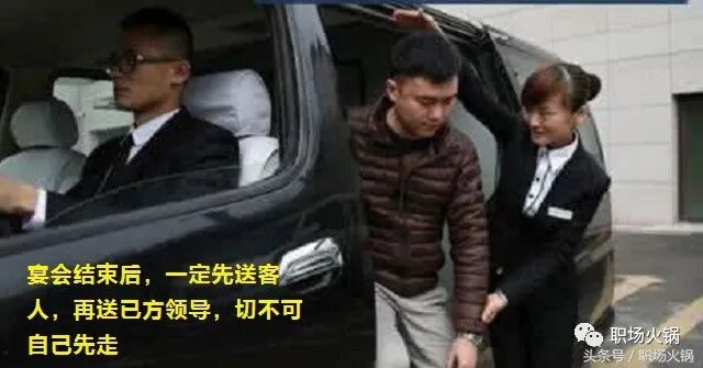 3.陪同领导去的话,跟领导出发。自己到场,一定提前十分钟左右到场,最好在门口处迎接双方领导,切不可一屁股坐在酒桌上埋头玩手机。