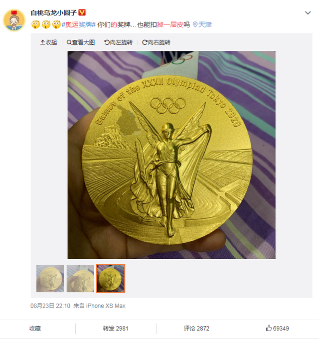 网友纷纷吐槽日本制作的奥运奖牌质量也太差了,拿到手还没有一个月就掉皮了,还有人留言再扣扣兴许能抠出巧克力。