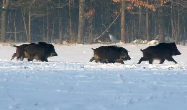 如果是在存在天敌的环境中,野猪在冬天过得也并不好,因为冬天就数它们最常见了,这些大型捕食者很会寻找它们的踪迹,毕竟谁都不想错过这样一个行走的优质蛋白。