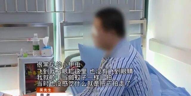 吴先生接受了采访,他说自己拍死的是一种非常常见的小飞虫,顺势揉了揉眼睛,当时的专家认为小飞虫携带细菌正好被吴先生弄到了眼睛里,并最终导致感染。