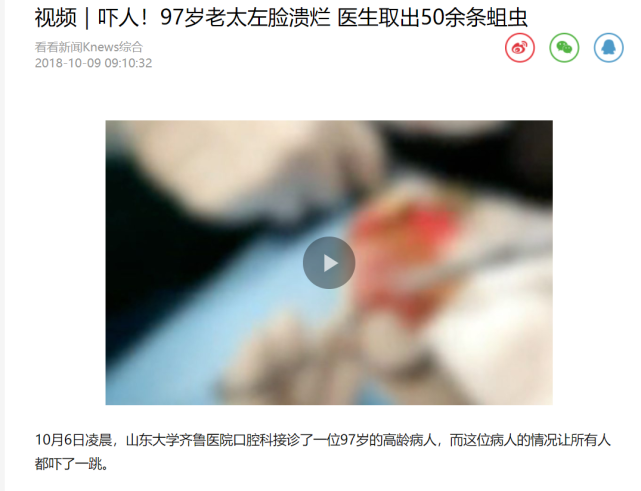 在医院中,医生在张先生母亲脸颊取出几十条昆虫幼虫,这是典型的蝇蛆病,根据当时的报道,中国记录在案的蝇蛆病案例也就十几例而已。