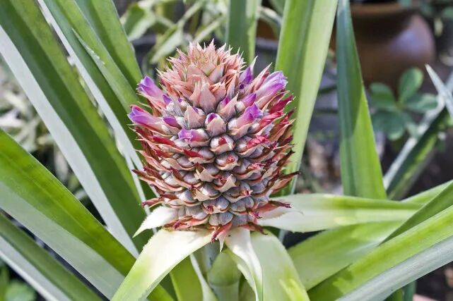 菠萝生长趋于成熟的时候,植株的中间就会长出一个花序,这个花序上会长出多达200个独立开放的花朵。