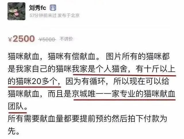 由于很多平台都会屏蔽血猫献血的相关交易信息,所以这些人最难的就是寻找客源,但是有些宠物医院是直接和这些人合作的,或者直接他们自己饲养血猫。
