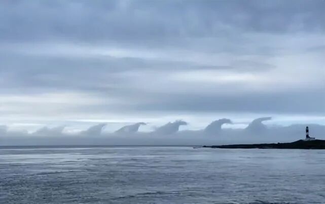 开尔文-亥姆霍兹波是一种极其罕见的天气现象,云会产生有趣的波型。