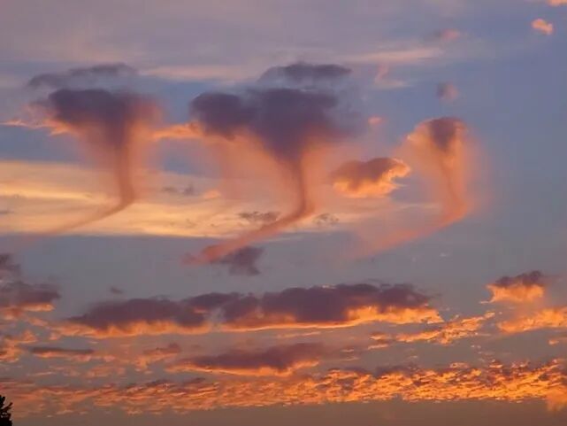 这种云形成的原因很简单,就是降水云在雨水落下的时候,还没有到达地面就蒸发了,所以形成了像水母触角一样的底部。