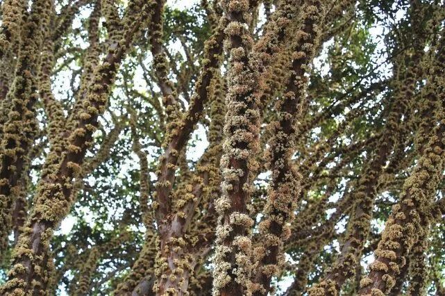 当它开始结果的时候,整棵树的树干都是密密麻麻的果实,看着十分不真实,但其实人家确实就长这样。