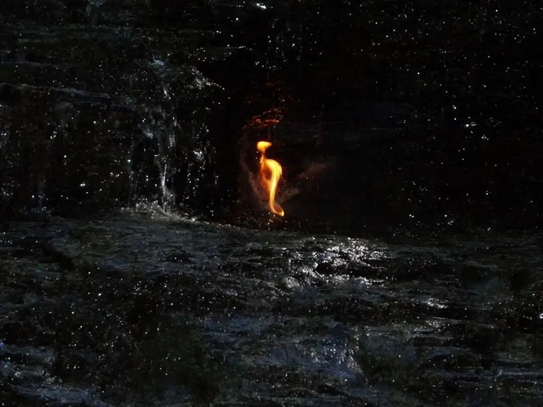 它其实也是煤层气泄漏导致的,由于地下的可燃气体一直在供应,所以只要不是瞬间隔绝氧气,它就基本不会熄灭,即便是在瀑布下。