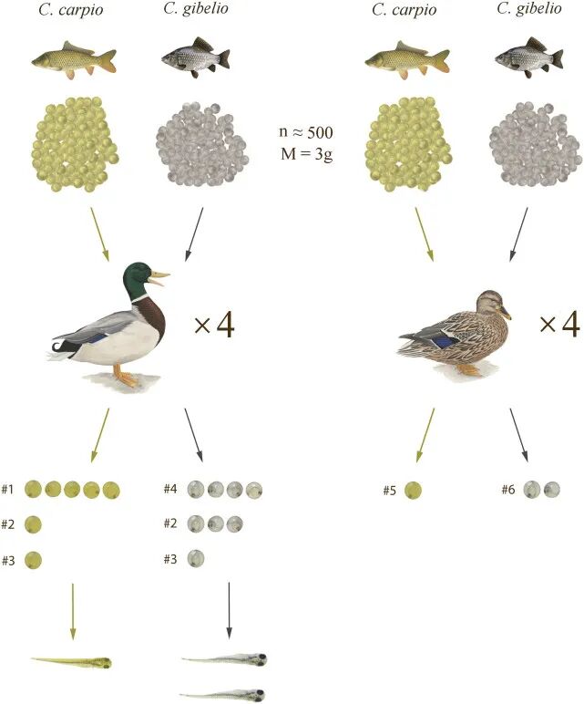 2020年,匈牙利多瑙河研究所生态研究中心的研究人员用两种入侵鱼类——鲤鱼和普鲁士鲤鱼的受精卵喂养了八只圈养的绿头鸭。