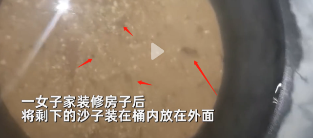 近日,广东一女子因家里装修采购了一些沙子,等装修结束了,还有一部分沙子没有用完,她便将剩余的沙子放在一个水桶里,露天放到屋外,不再关注。