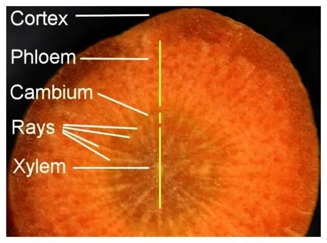 现在我们可以总结一下,胡萝卜的核心出现木质化的原因其实就是它本身就有这样的核心,而木质化细胞会随着植物生长而堆积,从而让核心更具木质化。