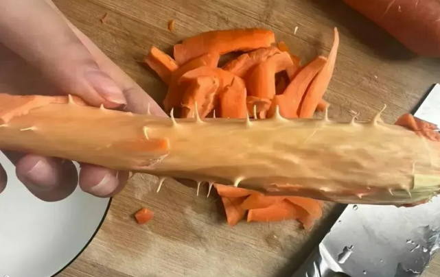 近日,有博主晒出了一根奇怪的胡萝卜,其外表和普通萝卜没什么两样,但是切开后里面竟然有一根奇怪的木质核心,而且还带有许多刺。
