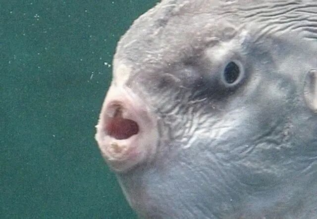 近看观察翻车鱼,就会发现,翻车鱼的嘴巴是合不上的,张着嘴的脸部总表现出困惑的表情,也很难和“机智”联系到一起。