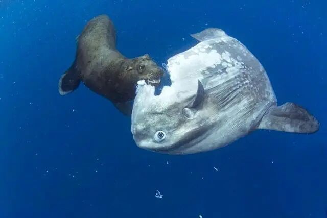 相比较,无论是成年的海狮还是海豹,几乎体长都不会超过3米,体重也就1吨左右,为何会把庞大的翻车鱼欺负成这样,把它当成大饼啃,翻车鱼却丝毫没有反抗之力?