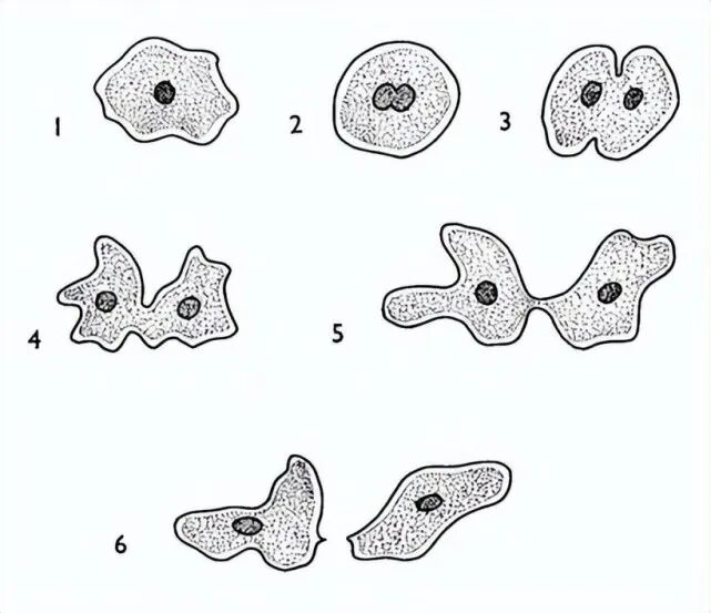变形虫都是原生单细胞动物,生活在水中,通过吞噬细菌等营养物质来生存,而增殖方式就是简单的二元分裂。