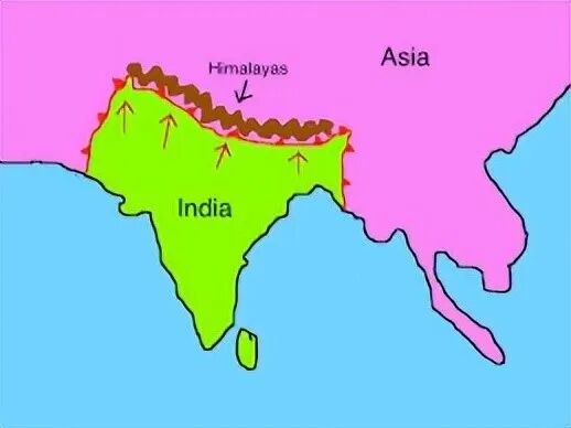 大约在1.8亿年前,南半球的冈瓦纳大陆开始分裂,其中印度古陆向北移动,在大约5500万年前它撞上了现在的南亚地区。