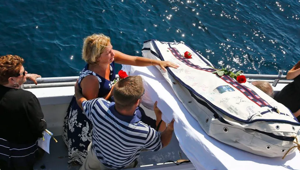 而在美国,其他要求和澳大利亚差不多,需要特定的机构来承办水葬,而且必须安葬在特定的位置,唯一不同的是,美国是可以使用棺材的,尤其是海军,使用的是金属棺材。
