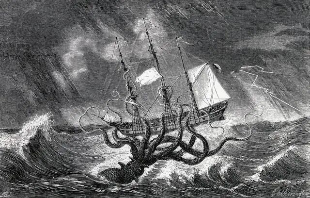 它长6.4米,宽2米,重达7吨,有头、有眼睛、有嘴须和尾巴。一时之间轰动了自然界、媒体界......经过调查发现这是一只生活在深海中的巨型章鱼,但还有人猜测是外星人变异。