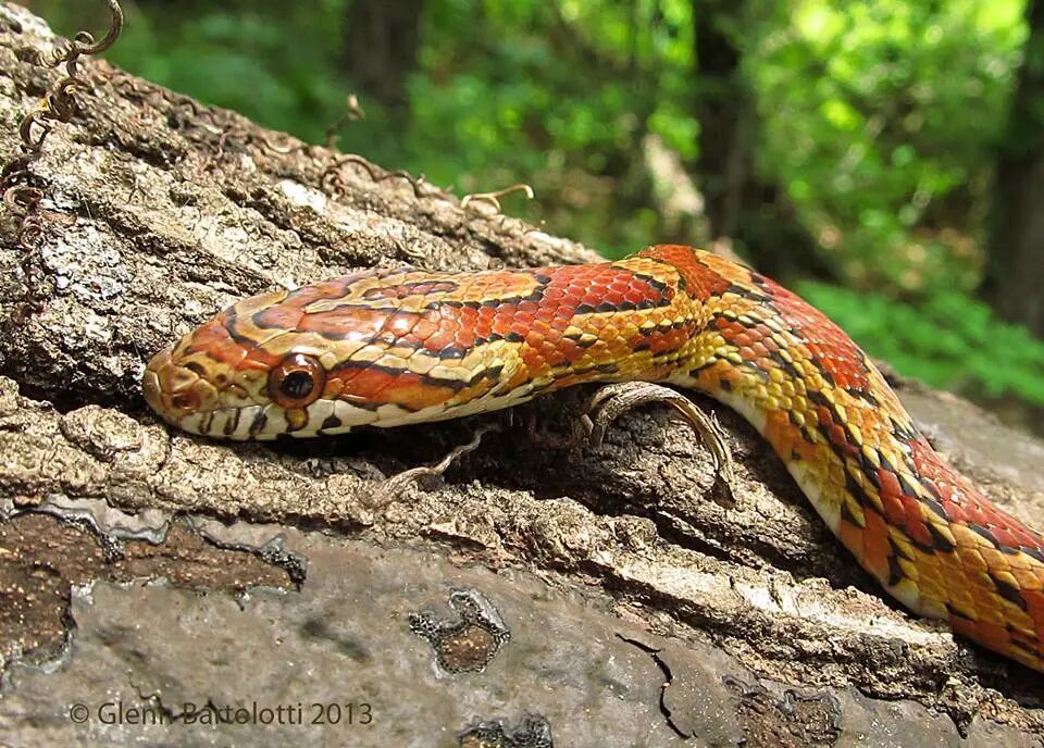 玉米蛇生长在美国东南部,它们看起来好像确实很危险——自然状态下它们就是这样五颜六色的,而众所周知,自然界鲜艳的颜色通常是一种警示作用,那些有着剧毒的动物才会拥有这些颜色,它们用鲜艳的颜色来提醒捕食者,不要捕食错了,我很危险。